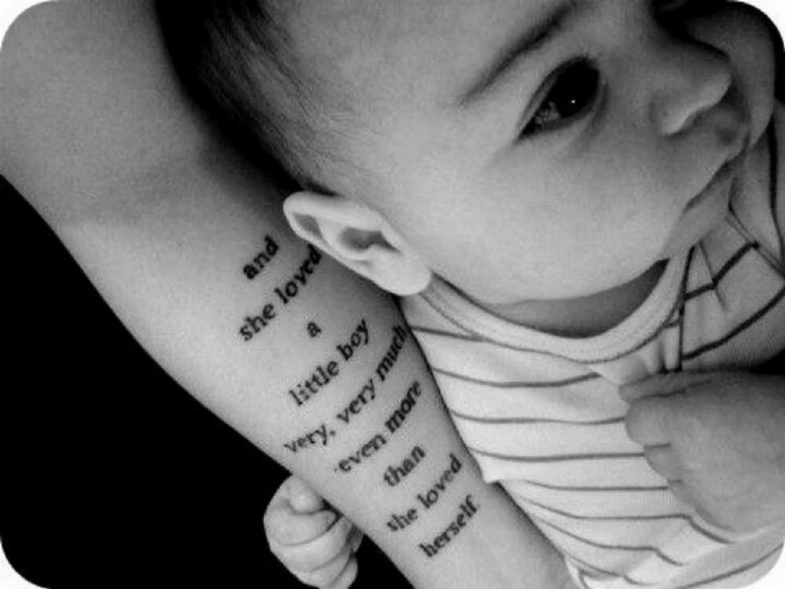 Azt az elmondhatatlan szeretetet próbálta meg kifejezni kisfia felé ez a mama is, amikor alkarjára azt a Shel Silverstein idézetet varratta, mely szerint jobban szeret egy kisfiút, mint saját magát.