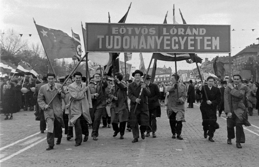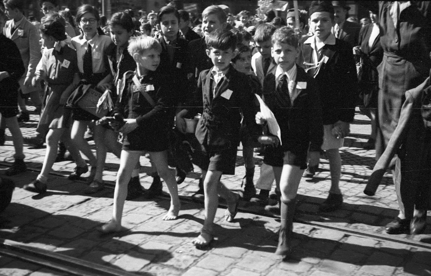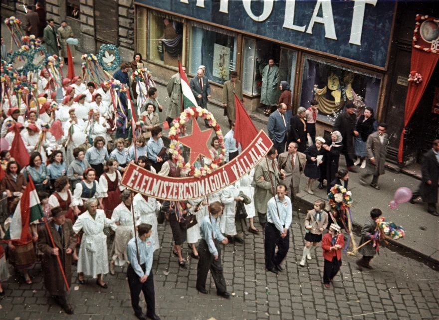 Magyarországon is régóta tartjuk a május 1-jét, de igazán nagyszabású ünnep 1946-ban lett, amikor a Kommunista Párt szervezésében vonult fel az ország apraja-nagyja, erősítendő a szocialista ideológiát. (Fotó: Fortepan)
