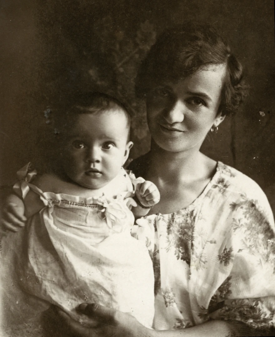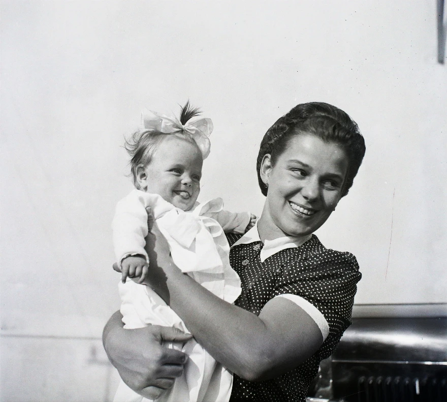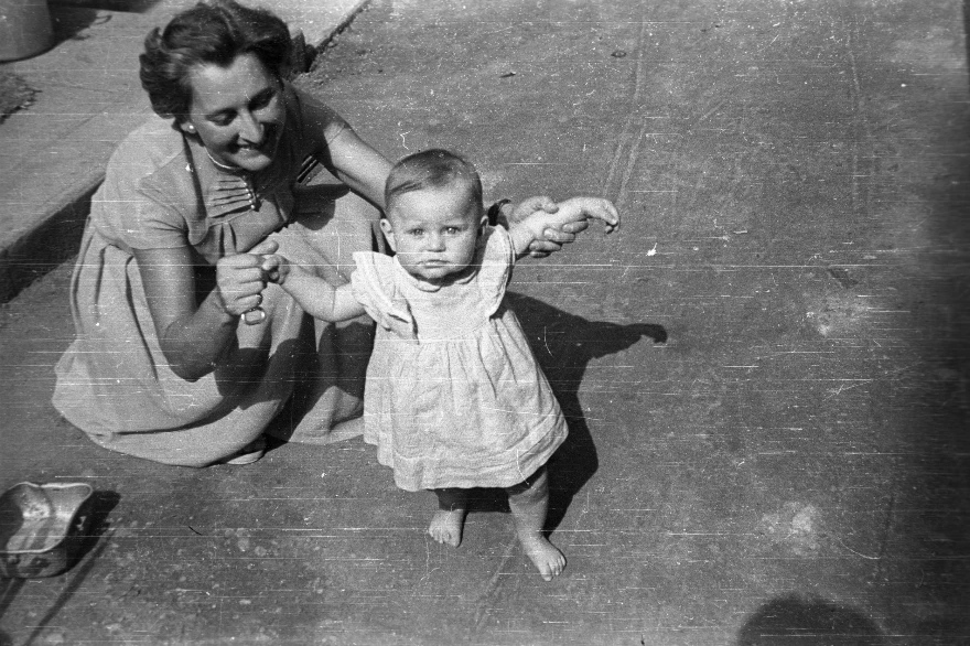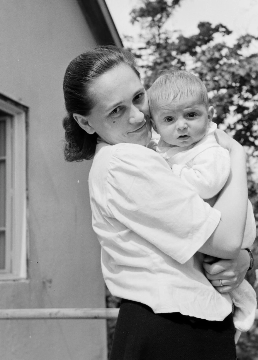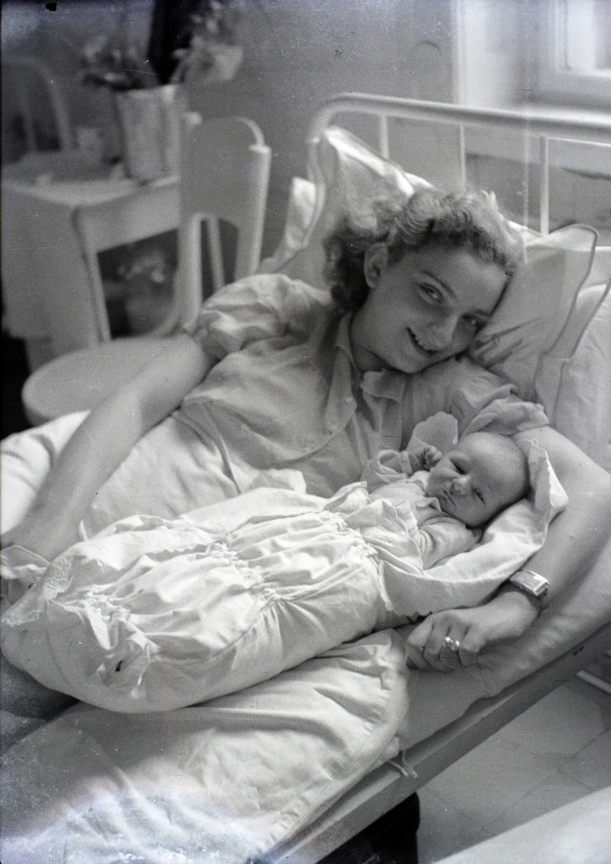 Anyuka az újszülött babájával 1946-ban. (Fotó: Fortepan/Hámori Gyula)