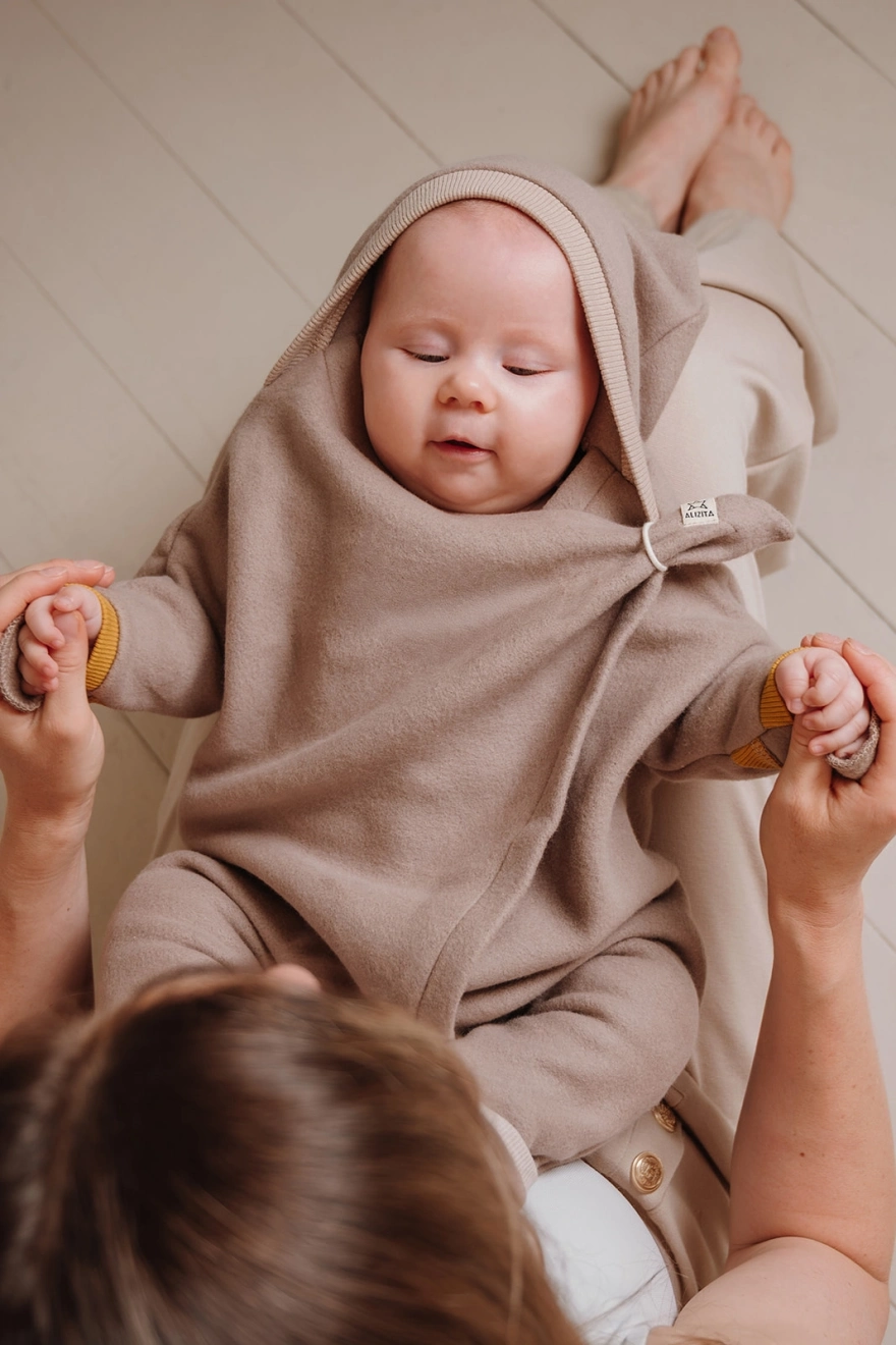 A csillagoverál egy sokoldalú, praktikus és kényelmes megoldás a téli babaruházathoz – különösen, ha természetes, lélegző anyagból készül. Az állítható kéz- és lábrészek gyorsan reagálnak a hőmérséklet változására, a babád pedig mindig komfortosan marad, akár hordozod, akár babakocsiban utazik, vagy hideg autóba szálltok be.
