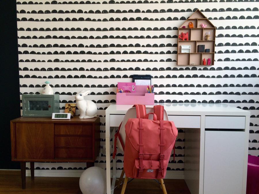A legfontosabb szempont, hogy szeressék és használják az asztalukat. Nálunk a bútorok többsége fehér, ezért az asztalaik (IKEA MICKE) is azok lettek. A tapéta (Ferm Living) is most került a falra, az is alapvetően minimál. A székeket (Charles and Ray Eames) használtan szereztük tavaly, ezek azontúl hogy nagyon szépek még kényelmesek is.