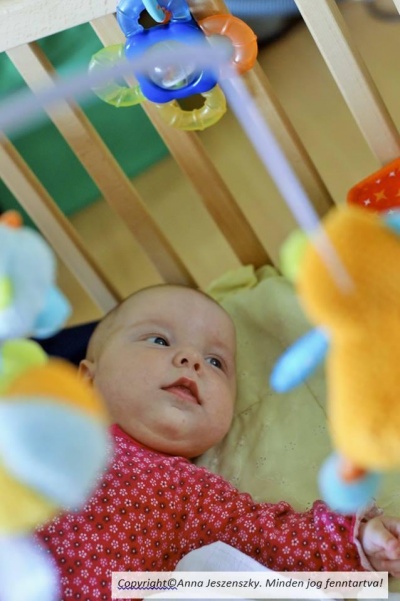 Irigykedve látom, ahogyan óriási kíváncsisággal a szemükben, hosszú percekig képesek bámulni a plafonon lassú táncot járó fényfoltokat. Ilyenkor kedvem támad befeküdni melléjük a járókába és „lemenni csecsemőbe” (bevallom, volt is rá példa, no nem a járókába, abba sajnos, a 15 kilós súlykorlát miatt akárhogy osztottam, szoroztam, a napi csokis keksz adag csökkentésével sem férek bele). A minap a buszon utaztunk, és Róza kivételesen éber állapotában (séta közben szinte mindig alszik) a busz plafonját bámulta meredten, meg sem hallva a hangomat. Gondoltam, meglesem, mi lehet olyan érdekes, hogy szem elől téveszt engem, az anyját, akinek a jelenléte egyébként folyamatosan ellenőrzött... A buszon utazók furcsálló pillantásai közepette (alapjáraton is igen nagy látványosság számba megyünk) sűrűn tekintgettem fölfelé, de aztán nem mertem elmerülni a pompás látványban, amit egy jófajta busz teteje nyújthat, hogy aztán a belefeledkezéstől megeredt nyállal a szám szélén, kezeslábasban vigyenek el egy kibélelt szobába.