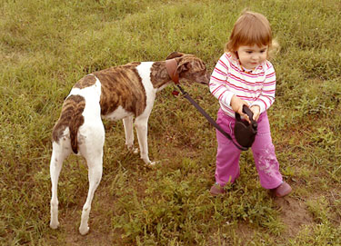 A pórázzal történő sétálást még gyakorolnia kell Dorkának, mert szereti rángatni Rozit, de hát kétévesen még nem értheti, hogy hogyan működik a pórázzal történő fegyelmezés, amikor macska vagy ellenséges kutya tűnik fel a láthatáron.