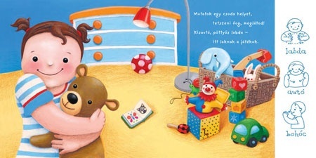 Nyulász Péter vidám, dallamos sorai, és Pap Kata bájos rajzai izgalmas élményt nyújtanak a kicsiknek, miközben a babajelbeszéd néhány fontos jelével ismerkedhetünk meg.