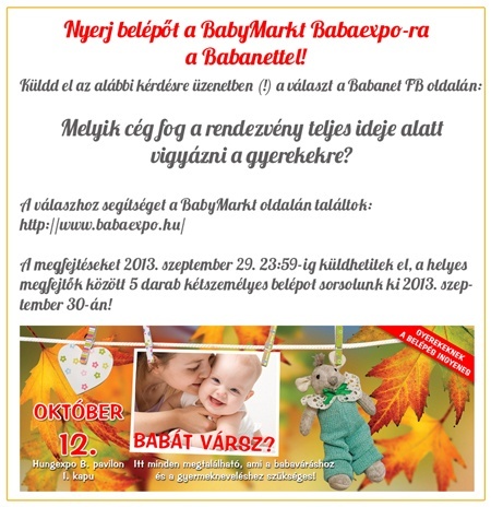 2013. október 12-én kerül ismét megrendezésre a Hungexpo B pavilonjában a BabyMarkt Babaexpo! Ha szeretnél belépőt nyerni a rendezvényre, játssz velünk!