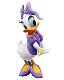 | DAISY KACSA – Az elbűvölő és drámai Daisy 1937-ben debütált a filmvásznon a „Don Donald” című rövidfilmben, amelyben híres partnerével, Donalddal szerepelt együtt. Ezután Daisy évtizedeken keresztül játszott különböző filmekben, többnyire Donald partnereként. Habár heves és erős-akaratú, alapjában véve Daisy mégis egy kedves, életvidám kacsa. Donald kacsával való kapcsolata olykor viharos – ami nem meglepő, hiszen ők ketten nagyon hasonló természetűek, de ezt soha nem vallanák be. Indulatos természetüket némileg tompítják a Szenzációs hatos tagjai, és Daisy bájos mégis erőteljes egyénisége színesebbé teszi a Játszótér légkörét. | ![]() |
