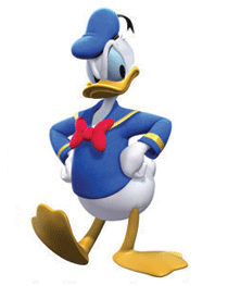 | DONALD KACSA – Kicsit idegesítő, türelmetlen és néha barátságtalan, mégis ő Mickey egér legjobb barátja. Annak ellenére azonban, hogy előszeretettel veszekszik és érthetetlen, heves kitörések jellemzik, Donaldnak mégis sikerül maga mellett tartania barátait, nem beszélve a rajongók sokaságáról, akik alig várják mogorva, de mégis humoros kitöréseit. Donald 1934-ben kezdte karrierjét a szórakoztató iparban a "A bölcs kis tyúk” című rajzfilmmel. Donald azonnal felismerhető és néha érthetetlen hangja legendássá vált az évek során, amely számos főszerepet hozott neki, pl. az 1943-ban Filmakadémiai Díjat nyert "A Führer arca” főszerepét. Visszatérve életre szóló barátaihoz a Játszótérre, Donald éppen egy közelképre gyakorol és gyakran hallható, amint elragadtatásában felkiált: „Ó, apám! Azt a paszta!” | ![]() |