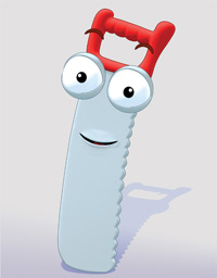 Jó tulajdonsága: A legmókásabb csapattag, alig várja, mikor „mélyesztheti” bele fogát a következő munkába. Mindig figyel szerszámtársaira, és óvatosságra inti őket, arra, hogy figyelmesen végezzék a munkájukat.