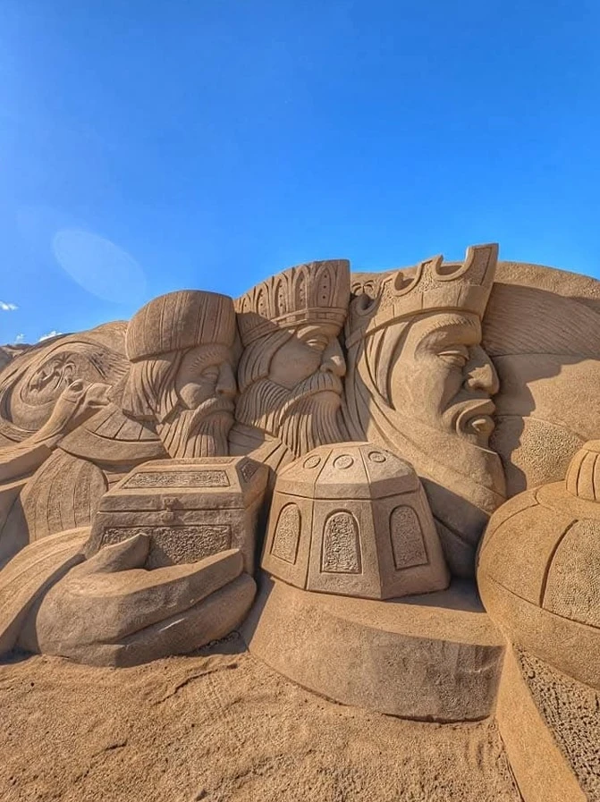 Nekem minden évben a kedvencem az óceánparton, egészen pontosan a strandon, a homokból, művészi érzékkel kimunkált Belén, azaz a „homokbetlehem”. Minden évben más-más művészek alkotnak egészen elképesztőt a homokhalomból, amelyek a szent családot és Három királyokat is megjeleníti minden évben.