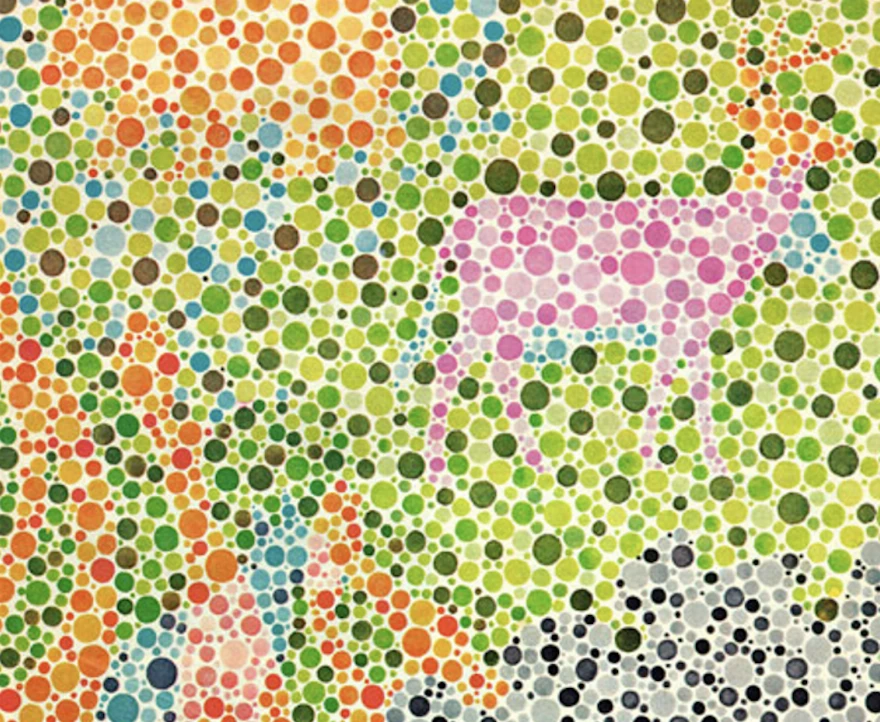 Az alábbi, állatokat rejtő kép egyszerű, NEM ORVOSI tesztként használható gyermekek (és felnőttek) vörös-zöld színlátási zavarának kimutatására. Az állatok alakját azok a kisgyermekek is felismerhetik, akik esetleg még nem tudnak számokat olvasni.