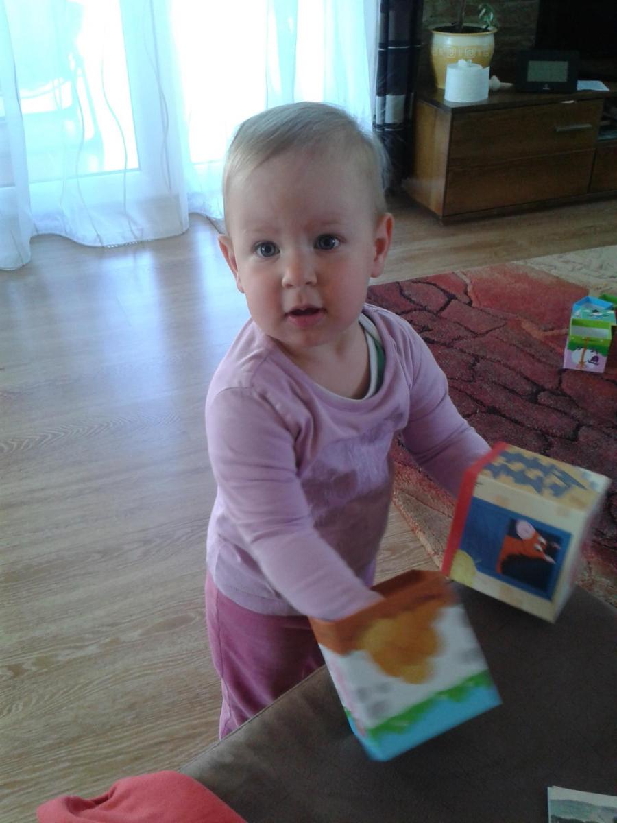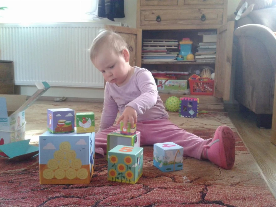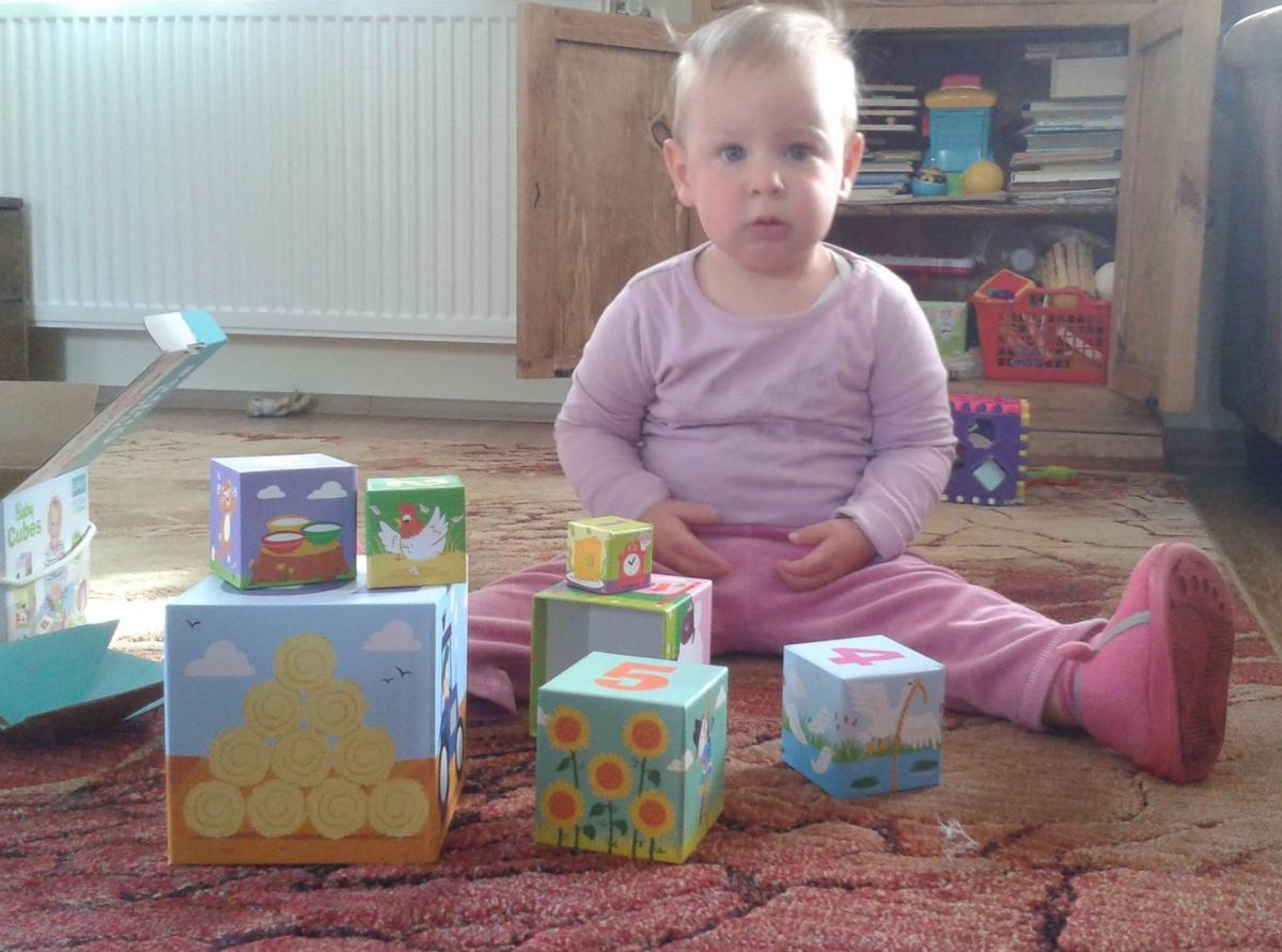 Gondolom általában a gyerekeknek minden új játék azonnal felkelti az érdeklődését, az én kislányom is így volt ezzel. Nem sokáig tétlenkedett, egy kis biztatásra szépen felépítette a tornyot.