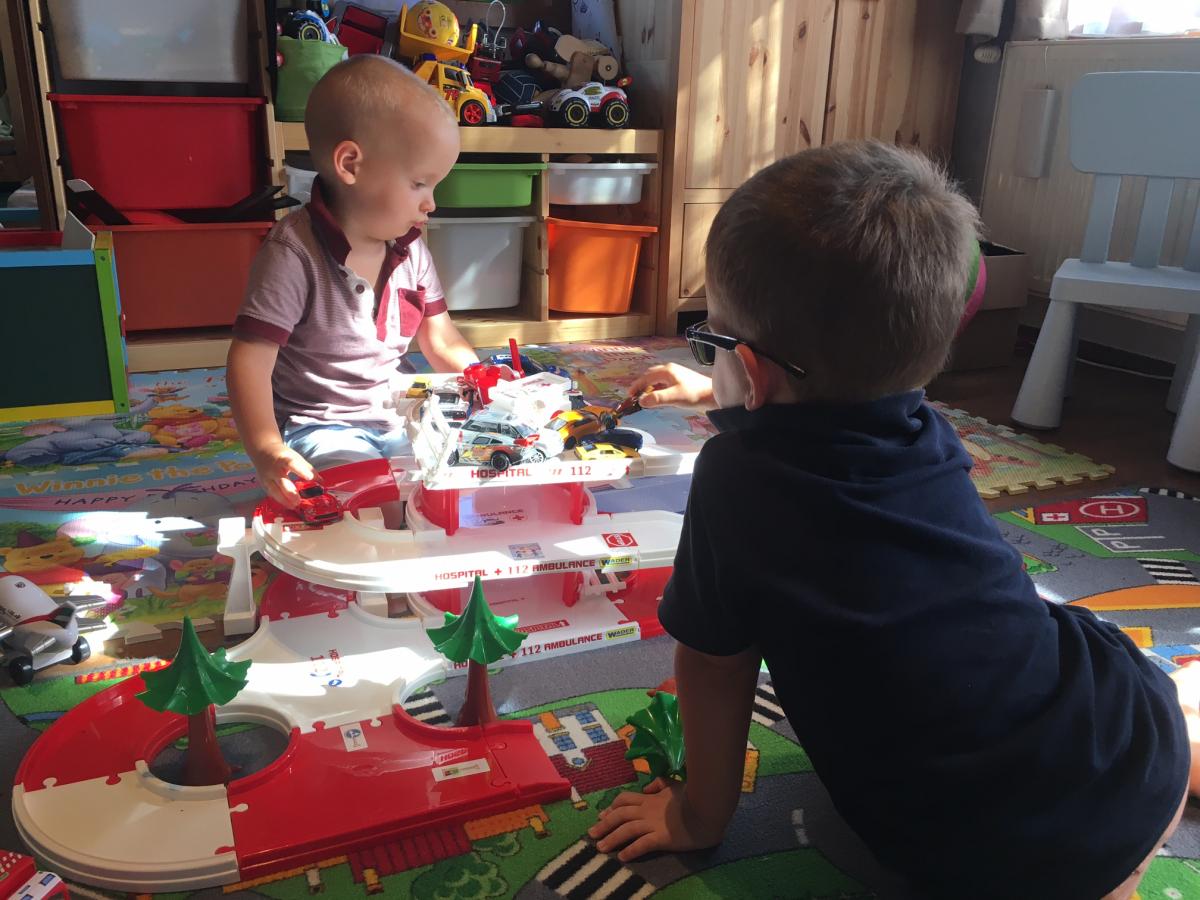 Szerencsére a fiaim nagyon szeretnek együtt játszani, különösen imádják az autós játékokat, ami ugye azért nem meglepő két kisfiú esetében. Képesek akár egy-két órán át is eljátszani a játszószőnyegükön ücsörögve.