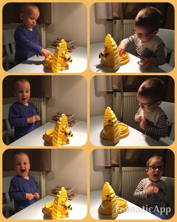 Bekapcsolás után meglepően élethű hangot hallunk; zümmögő méhecskékkel teli kaptárt idéz, akik vigyázzák a nagy munkával megépített lépet. A hangeffektusnak köszönhetően Marci és Ádám kissé megtorpant, de nem tartott ez pár másodpercnél tovább és miután én elkezdtem a játékot, ők is azonnal bekapcsolódtak. Ettől kezdve pedig kezdetét vette egy nagyon szórakoztató, hangos kacagásokkal, sikítozásokkal teli délután. Mi picit változtattunk a leírt szabályokon, nem volt például kiesés, hanem minden körben játszott mindenki.