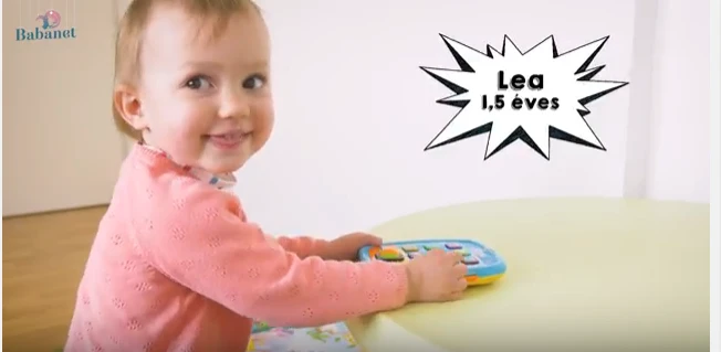 Amit szeretek benne, hogy beszél és énekel is (nem csak zenél), ráadásul magyarul. Nem túl hangos, van rajta 2 hangerő szint, de akár ki is tudjuk kapcsolni. Kidolgozásában sincs gond, felismerhetőek az állatok, szépek a színek. Annyi talán, hogy, ha tabletnek nevezik, lehetnének a gombok laposabbak, a „képernyőbe” simulóak. Lea tableten szokott mesét nézni, el tudja indítani, meg is tudja állítani az érintőképernyőn a videót. Ennek ismeretében a nagy és színes gombokkal ellátott játék ugyan tényleg jól leköti, de tuti nem sikerül elhitetnünk vele, hogy ez az ő tabletje.