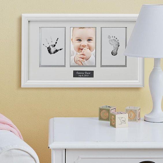 15. Válaszd ki a legszebb babaportrét, ami az utóbbi időben készült. Válassz hozzá egy szép, letisztult képkeretet, aminek hármas tagolása van. Ezek után már csak a baba tappancsának és kezecskéjének lenyomatát kell levenni – válassz az előbbiekhez jól passzoló színeket. És már kész is a legszuperebb ajándék, amitől mindenki odalesz!