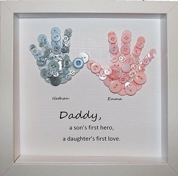 6. A lenti kép apák napjára készült, ami tulajdonképpen bármilyen kedves családi alkalomra is remek egyedi ajándék lehet. Ügyesen megjelenik benne az, hogy az apukának egy szuper kisfia és egy tündéri kislánya van. Rajzold körbe a gyerekek kezeit, gombokból rakd ki a lenyomatukat, és egy jópofa családi szlogennel kísérve kereteztesd be.