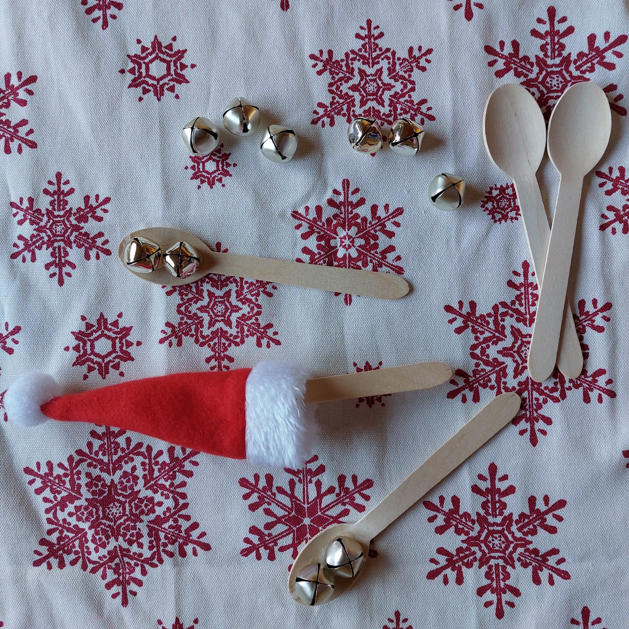 Ajándékot adni mindenképp jó dolog. Hasznos ajándékot még jobb. Ha pedig magunk készítjük el, talán még többet is jelent. Én szívesen adok kézzel készített ajándékokat. Most is ilyenekkel készülök a mi első téli ünnepeinkre. Mivel a csörgőn és a kontrasztos képeken kívül mással nem is tudnék előrukkolni, ezért ezekből merítettem ötletet. Hiába van jó pár darab fa vagy műanyag csörgőnk már, úgy gondoltam készítek egy sokadikat, ami mégis csak különleges. Egy fa kiskanálra ragasztottam csengettyűket ragasztópisztollyal és meg is született az első mű. Ennek a hangja sokkal lágyabb, kellemesebb, mint a műanyag csörgöknek és mivel csak egy fakanál, ezért sokkal jobban a kisbaba kezébe illik. Könnyű megfogni, vékony és nem is nehéz. A baba is könnyedén csörgetheti, de mi szülők is játszhatunk vele, akár egy szép karácsonyi dalt énekelve. Hangszernek is kiválóan működik.