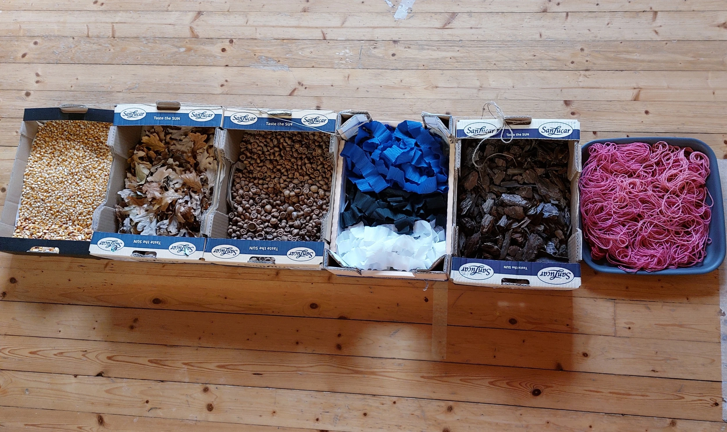 Ezekre a szőnyegekre valódi termések, tárgyak kerültek, amelyek sokkal több érzetet váltanak ki belőlünk. Minden érzékszervünkre hatnak, nem csak taktilisan, ahogy sétálgatunk rajta. Emiatt azt éreztem, milyen jó, hogy nem vettem meg azt a bizonyos terméket, hiszen valami jobbat tudtunk itthon alkotni. Filléres megoldás ez, hiszen alig költöttem bármire is és sok alapanyag volt itthon. Ami nem volt, azt a kertben vagy az erdőben gyűjtöttük össze, ami csodás közös élmény volt. Így a gyerkőc is végigkísérte a folyamatot, míg elkészült a szőnyegünk. Együtt gyűjtöttük a kavicsokat, hoztuk haza, mostuk, szárítottuk és került rá a szivacsdarabokra. A játszótéren összeszedtük a legszebb makkokat, és hazahoztuk a kis biciklikosárban. Kirándulni mentünk, hátha találunk gesztenyét, diót, botokat.
