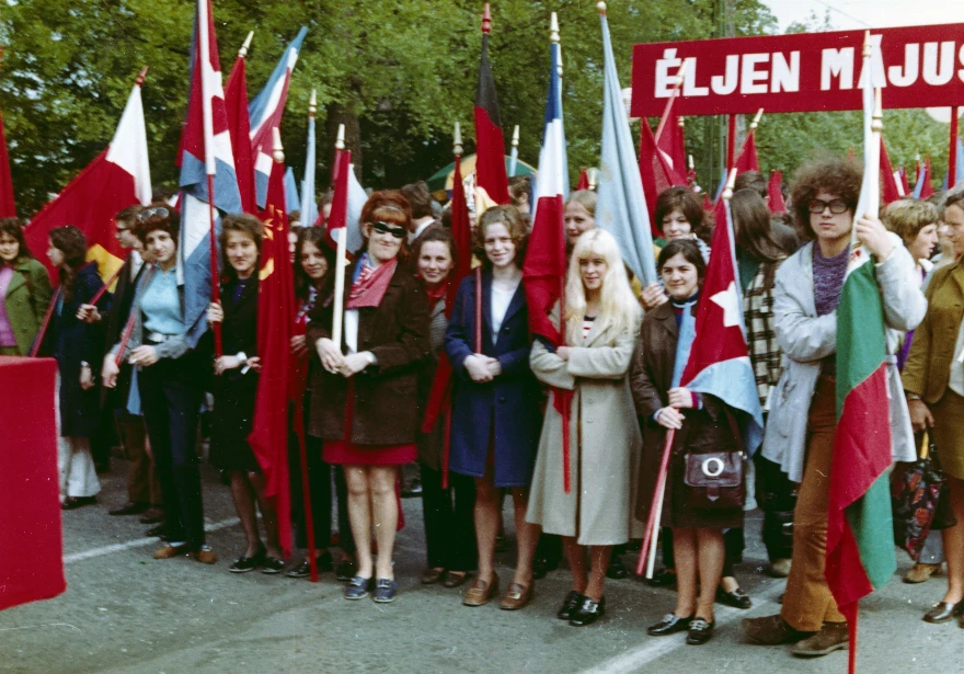 A május 1-jei felvonulások állandóak voltak, csak a divat változott. (Fotó: Fortepan, Anders Gyula, 1971)