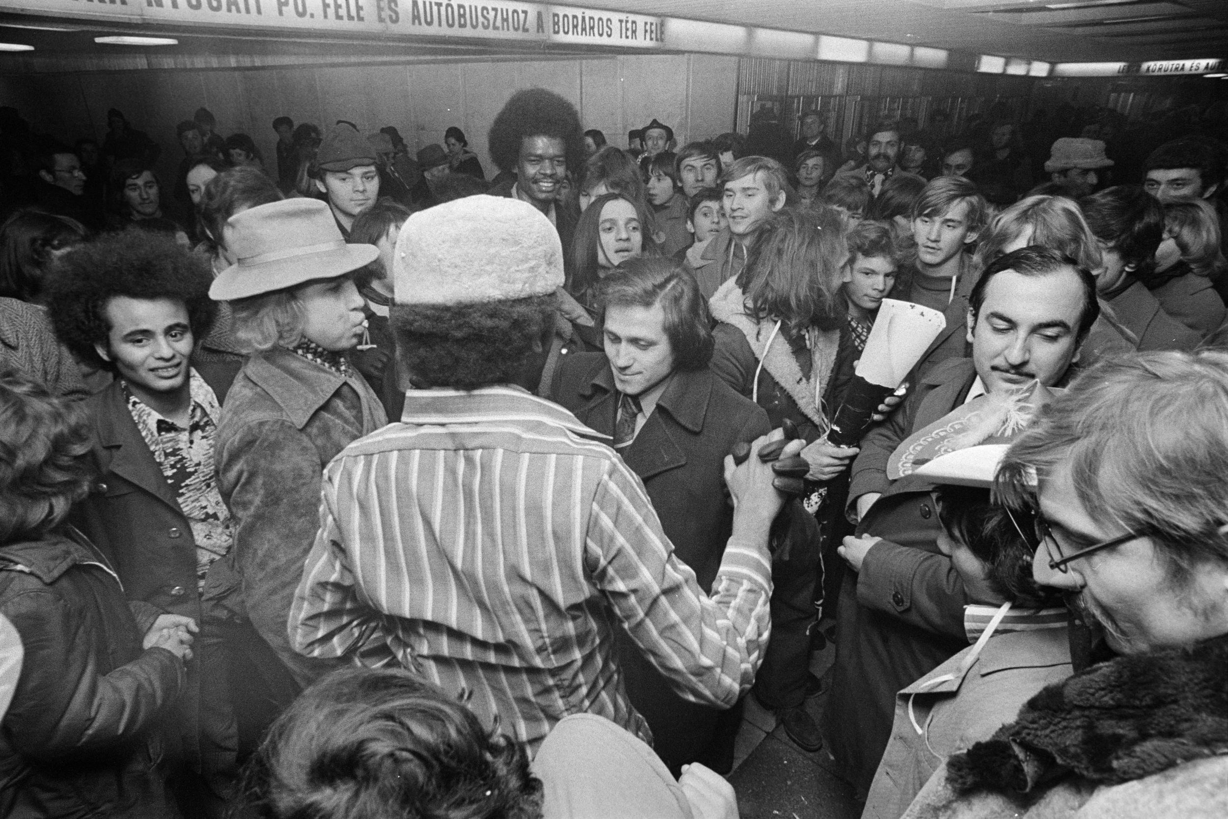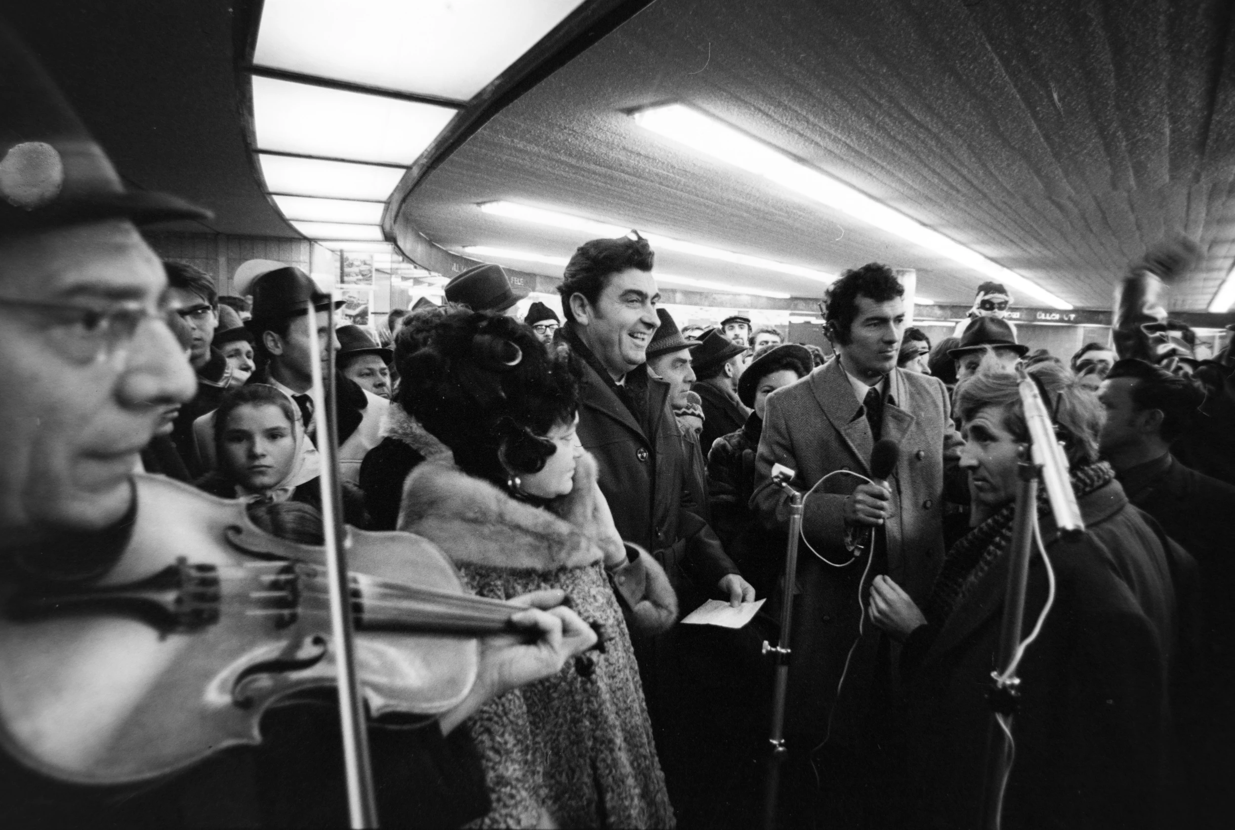 Aki pedig inkább az utcán köszöntötte az újévet, az is talált magának programot bőven. Ez az 1971-es fotó az Üllői út – Nagykörút kereszteződésénél lévő aluljáróban készült, ahonnan Szilágyi János közvetítette a Szilveszteri kívánság műsort, "Térzene" az Üllői úti aluljáróban címmel. Középen Kovács Apollónia és Bojtor Imre népdalénekesek.