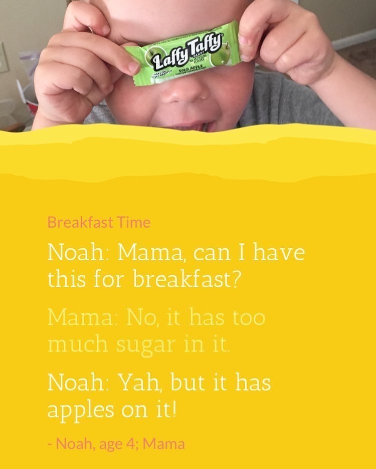 Noah (4 éves): Anya, ezt megehetem reggelire?
