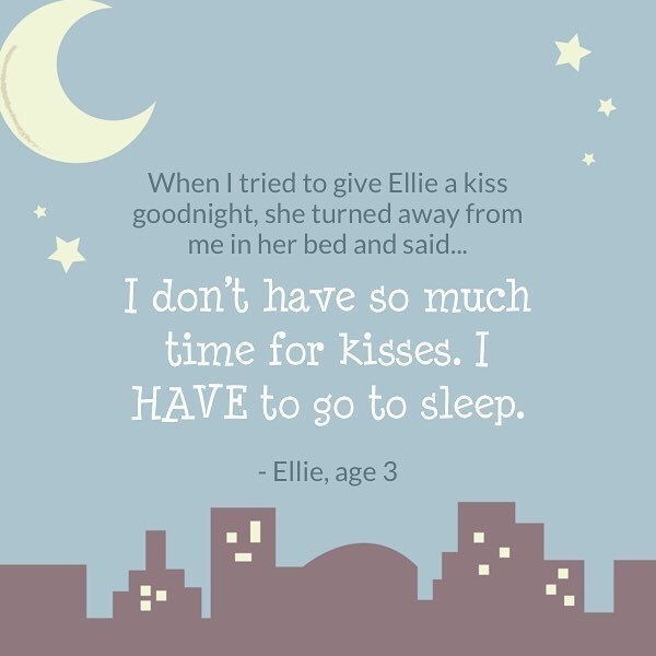Mikor a kislányomnak, Ellienek jóéjt puszit szerettem volna adni, a fal felé fordult, majd azt mondta: „Nincs nekem ilyen sok időm a puszizkodásra. Hiszen aludnom kell!” (Ellie, 3)