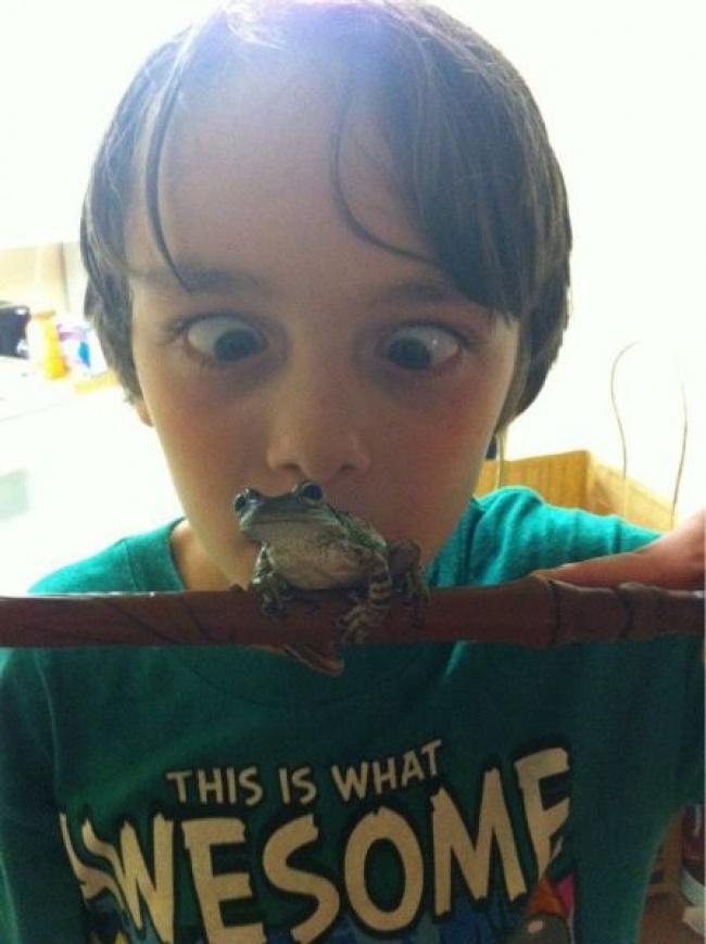 A fiam ezelőtt soha nem látott még békát élőben, mindig csak könyvekben találkozott velük.
