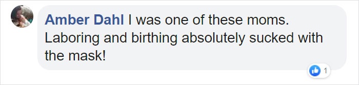 Az első szülésemnél lélekeztetőre voltam kötve, mert a fiam szaturációs szintje alacsony volt, szóval nem volt választásom. De valami borzalmas élmény volt! A maszk viselése önkéntes választáson kellene alapuljon szerintem.