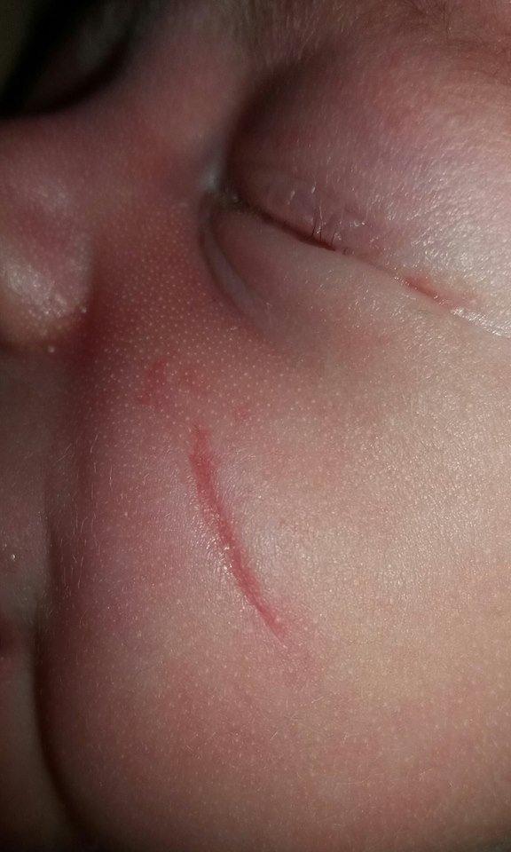 A fővárosi újszülött arcán a seb. A fotót a szülők posztolták a Facebookon © Facebook
