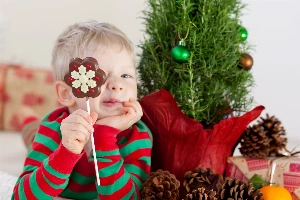Liptai Claudia és Pataki Ádám hatéves kisfia, Marci is besegített a szüleinek a mézeskalácsok gyártásába. A család legfiatalabb tagja a rénszarvasos kötényében készítette a süteményeket.