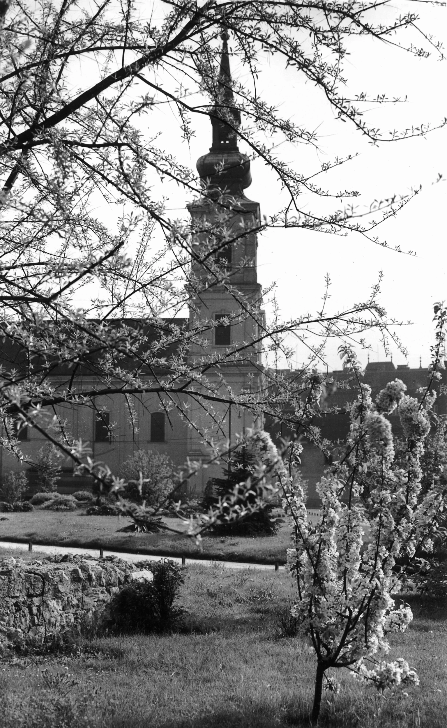 A Tabán egykor a szegényebb rétegnek adott otthont: régen főleg szerb tímárok éltek itt, de kádárok, kovácsok és bognárok is itt találták meg a boldogulásukat. A mai formáját a 20. század elejére nyerte el. A fotó 1943 tavaszán készült, a virágzó bokrok, fák mögött az Alexandriai Szent Katalin-templomot látni.