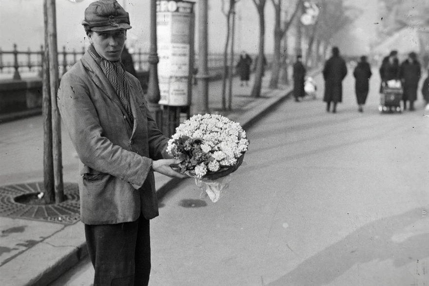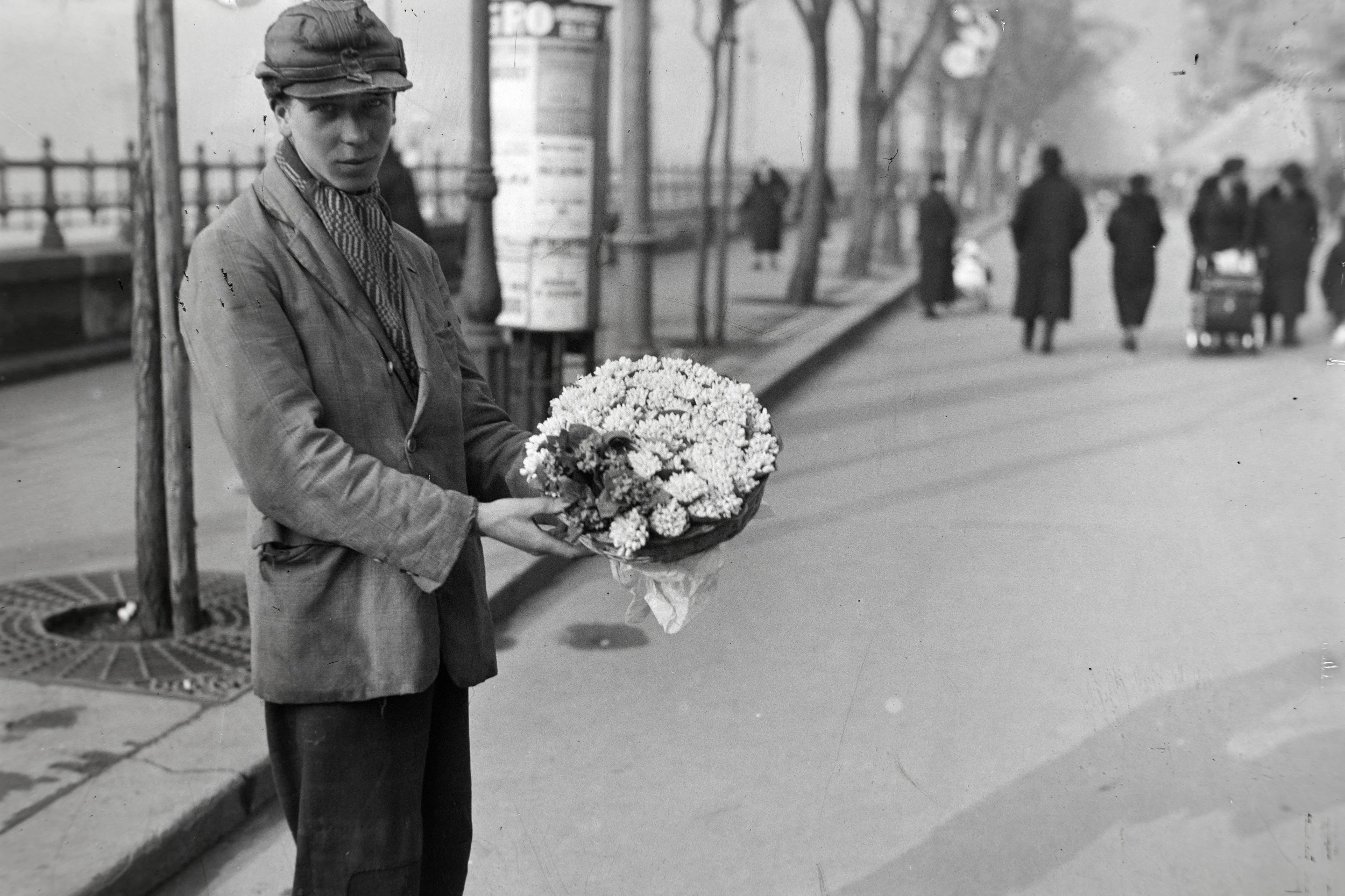A Dunakorzó már régen is kedvelt sétahely volt, hiszen Budapest egyik legszebb panorámájú sétánya. A Belgrád rakpart Széchenyi lánchíd és az Erzsébet híd közötti szakaszán található gyalogos zóna az 1800-as években még beljebb helyezkedett el. Innen nyílik a legszebb kilátás a Budai Várnegyedre, a Citadellára, a Gellért-hegyre és az említett két Duna-hídra. A fotó még a II. világháború kitörése előtt, 1936-ban készült a virágárus fiúról.