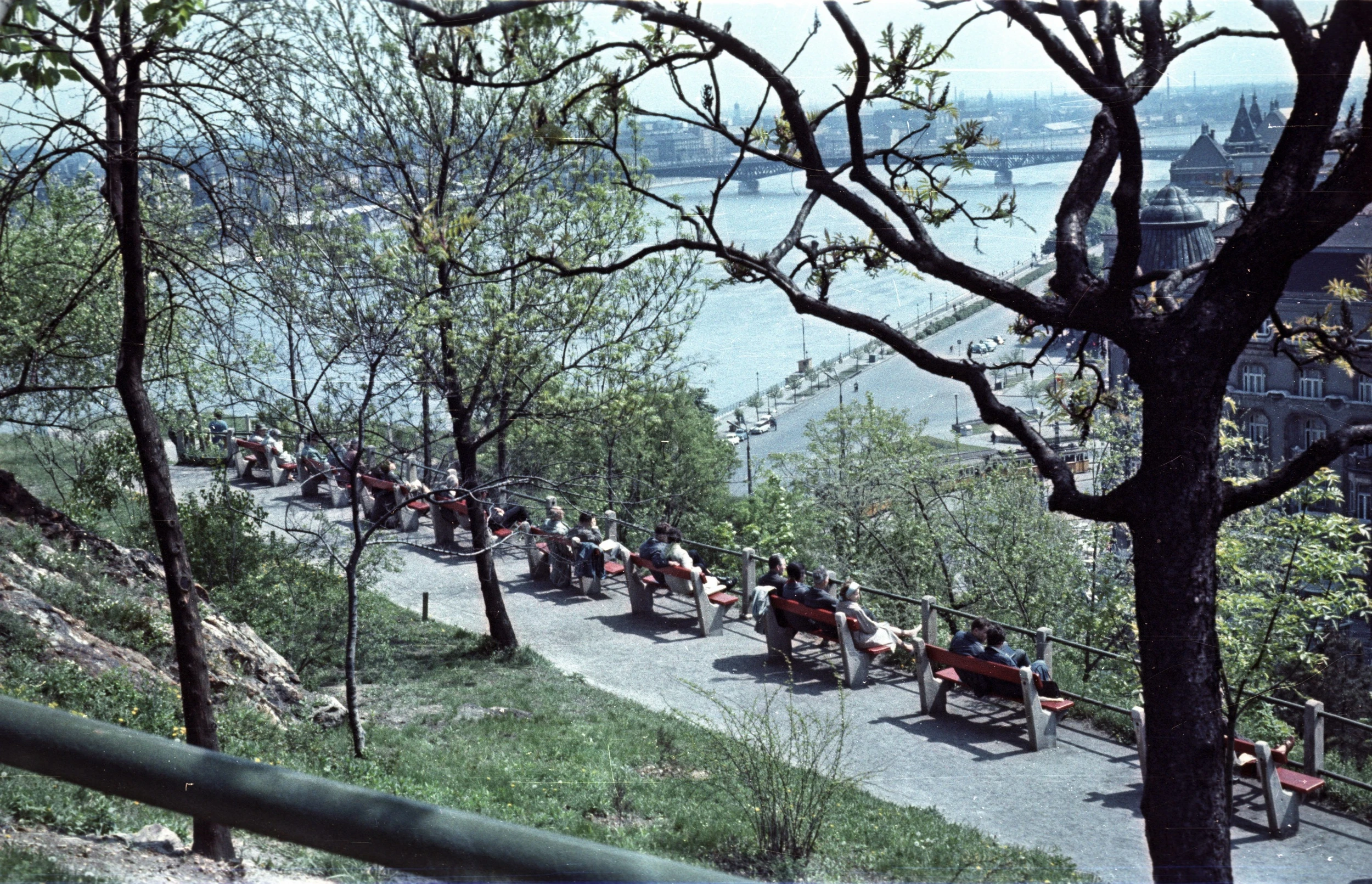 1964 tavaszán minden pad megtelt Budapest felett: munka után és hétvégén sok budapesti itt élvezte a melengető napsütést, és a Szent Gellért tér, valamint a Petőfi híd látványát.