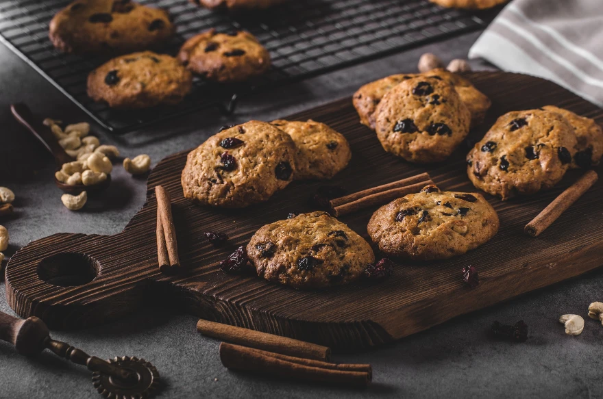 Melegítsd elő a sütőt 180 °C-ra, közben vegyél ki kis adagokat a tésztából, és formálj belőlük golyókat, majd lapítsd el őket. Helyezd a kekszeket egy sütőpapírral bélelt tepsibe, hagyj köztük helyet, mert sütés közben meg fognak nőni. Körülbelül 10-12 perc alatt készre sülnek. A sütőből kivéve még puhának tűnhetnek, de hűlés közben megszilárdulnak, és elérik az ideális állagot.