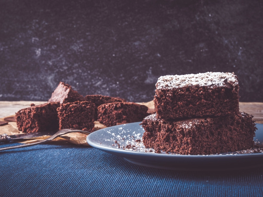 A masszát simítsd sütőpapírral bélelt tepsibe, és süsd 180 °C-on nagyjából 25–30 percig — tűpróbával tudod ellenőrizni, mikor jó. A tetejére még melegen szórj egy kevés csokidarabot, ami így majd szépen ráolvad a süti tetejére, amikor pedig kihűlt jöhet a porcukor!