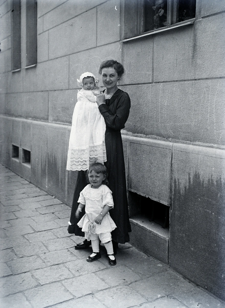 A fiatal anyukát 3 gyermekével együtt egy erdélyi ház udvarán örökítették meg 1906-ban. (Fotó: Fortepan/Cholnoky Tamás)