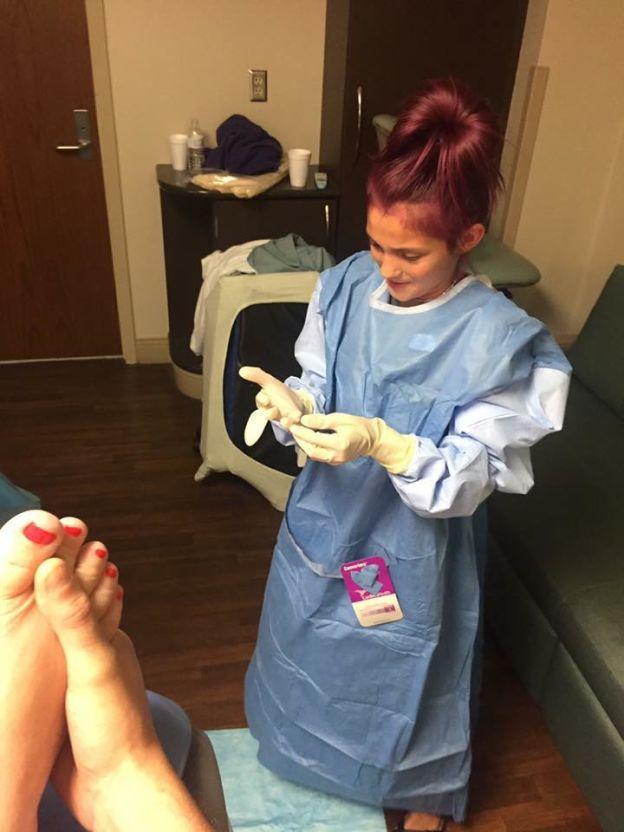 Bár az Instán nagy kedveltségnek örvendenek a fotók és a történet, a tizenkét éves Jacee Dellapenna édesanyja, Dede egyáltalán nem volt meglepődve a lánya bátorságán és érettségén, hiszen Jacee amióta az eszét tudja; orvos akar lenni. (Most nézzétek meg ezt a képet: a kiskamasz olyan rutinosan öltözik be, mintha évek óta ez lenne a szakmája!)