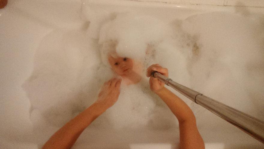 Sajnos elég rövid ideig alszik, ilyenkor nagyon gyorsan be kell fejezni a testápolást, ha lehet egyszerre: