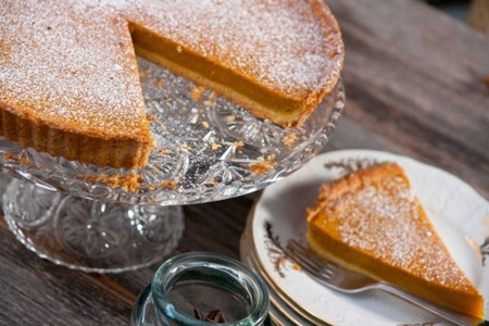 A képen a gyümölcstorta formában milyen az alap tészta? És milyen a tökös töltelék?