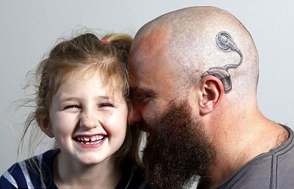 Alistair Campbell csodálatos dolgot tett lányáért, aki súlyosan nagyothalló. Fejére tetováltatott egy ugyanolyan implantátumot, mint amilyet a kislánya kapott.