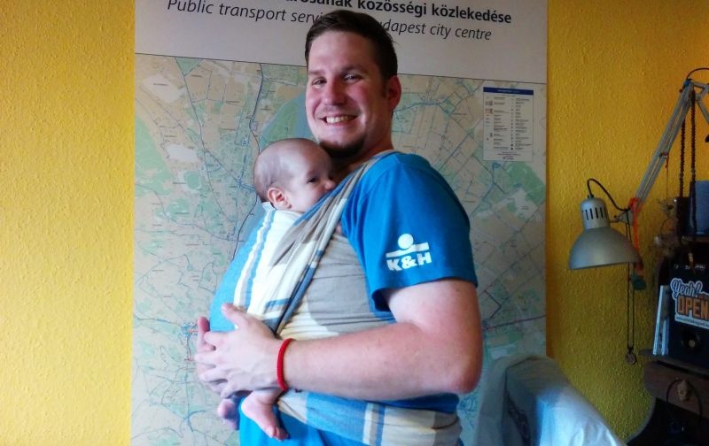 Kétféle eszközt is használunk kimozduláskor: egyrészt nyilván a babakocsit, Viru pedig a Nandu kendőjét is gyakran. Mivel ennek a megkötésére tucatnyi módszer van, hívtunk egy tanácsadó lányt, aki elmagyarázott néhány praktikát. Virág egyre lelkesebb, és nekem is tetszik nagyon, ha rajtam csüng Mimó, azonban a pasi agyamnak elég pepecs melónak tűnik a kendő felvétele. Ezért megbeszéltük, hogy amint lehet, beruházunk egy csatos hordozóba, mert nem szeretnék kimaradni ebből az örömből.