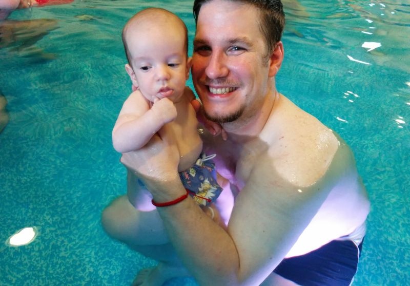 A hétvége csúcspontja, amire már Porontyka megszületése óta vártunk, a babaúszás volt. Elsőre eléggé megszeppent, de kisebb sírásokat leszámítva jól bírta a gyakorlatokat. Mint mindent, ezt is meg kell szoknia, hogy a végén ő legyen a Delfinember, vagy valami hasonló nevű szuperhős. De ha olyan ügyes vízilabdás lesz, mint az egyik nagypapája, vagy a nagybátyja, vagy sárkányhajós, mint a másik nagybátyja, már sokat nyert vele a hazai sportélet.