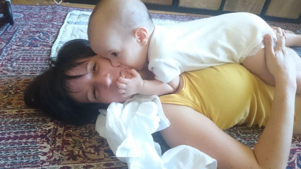 A héten Mimó fejlődésében főleg az eddigi jó dolgok hoztak újdonságot. Ez számunkra minden percben izgalom. Például, a nem sokkal korábban még nagy dolognak számító lovacskázás már teljesen alap, épp csak álmában nem csinálja. Rájött, hogy úgy haladhat előre, hogy ha négykézláb van, emelgeti a térdeit. Ezt meg is teszi, csak még az egymás után rakosgatás nem stimmel. Az anyatejen kívüli kóstoltatásban is nagyot ugrottunk. A napi néhány kanálról emeltük a szintet, és almából negyedet, barackból pedig felet is megeszik Baba úr alkalmanként. Sőt, már nem hogy nem fintorog, hanem, ha meglátja a kanalat, nagy izgalomba jön és várja a fincsit.