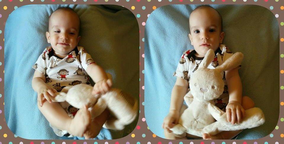 A héten lett féléves Mimó. Viru minden hónapfordulón ugyanabban a pózban és ugyanazzal a plüssnyúllal fotózza le. Most először ez komoly küzdelem volt, mert négyszer is megpróbált eliszkolni. De azért összejött a kép.