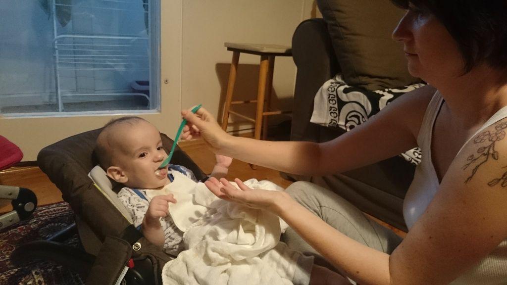 A hozzátáplálás is kibővült: a barackhoz és az almához reszelt babakekszet is hozzákeverünk. Nézegettük a boltban az előre elkészített babakajákat, de döbbenetesen drágák. Főleg, ha belegondol az ember, hogy mennyi anyag van bennük. Gyakorlatilag egy fél gyümölcsért egy darab céklával elkérnek majdnem annyit, mint amennyibe másfél sajtburger kerül. Majd megpróbáljuk itthon előállítani a fincsit, mert ez így nevetséges.