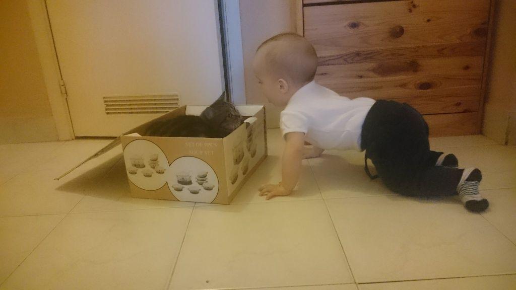 Pizsi cicánk is enyhül, láthatóan kezdi egyre közelebb engedni a szerzett kispajtását. Az utolsó pillanatban még mindig elugrál, ha közelítenek az érdeklődő babakezek, de egyre inkább kivár, mielőtt menekülni kezdene. Valószínűleg akkor lesz nagy áttörés a barátkozásban, ha majd Mimzi eséllyel tudja üldözőbe venni, vagy legalább már koordináltabban megy a simogatás.