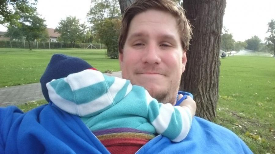 Ezalatt nem sok kedvem volt a lakásban maradni, mert nem csak szép idő volt, hanem kis kalandot is szerettem volna belecsempészni a papi-fiú délutánunkba. Elindultunk hát lesz, ami lesz alapon. Mimó persze az első sarkon megunta a babakocsit. Még szerencse, hogy Viru megtanította a karikás kendő használatát, így egyből átváltottunk arra. Újabb két sarok után be is aludt a kisfiam. Szerencsére ez éppen a parknál történt, így kiültem az egyik padra csilllezni. Ő csámcsogott álmában, én meg a könyvem olvasgattam. Milyen szerencse, hogy teljesen átszoktam az e-bookra, mert így mindig nálam van az aktuális olvasnivaló.
