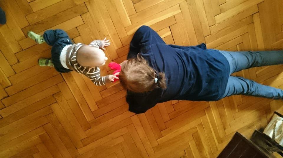 Az elmúlt héten két óriásit ugrott Mimó a fejlődés nevű létrán. Ráadásul ugyanazon a napon. Délelőtt azt vettem észre, hogy elég nyugtalan, de nem sírt, csak izgett-mozgott. Egyszer csak mellém állt, és elkezdett mutogatni a pelenkájára.