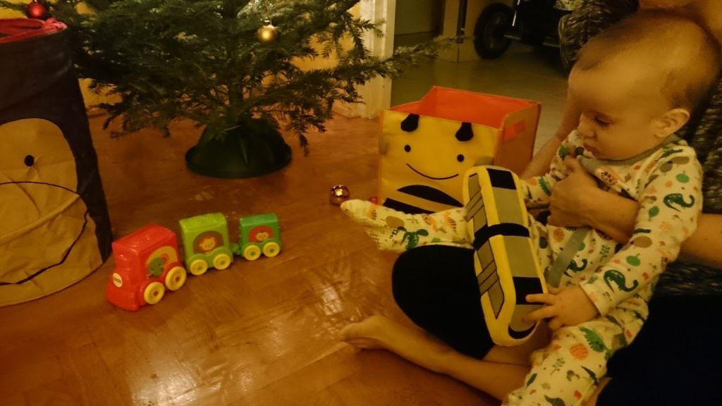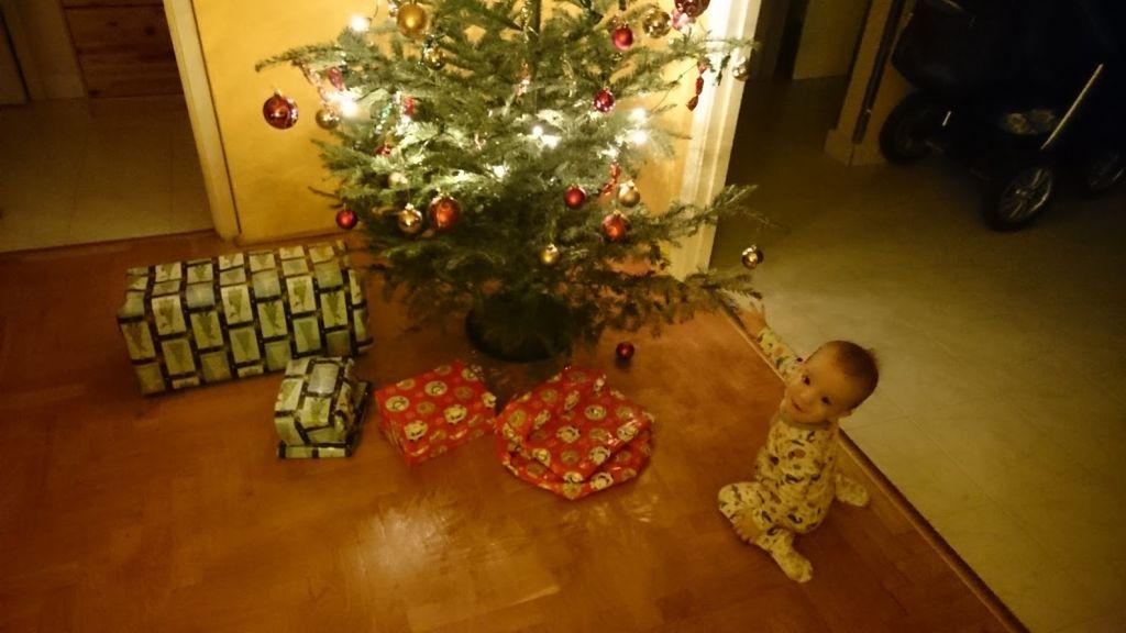 Mivel ez volt Mimm első karácsonya, a család meg jó nagy, gondosan ki kellett találni, mi legyen a hagyomány. Vagyis a menet, hogy mindenhova eljussunk. Ez sem úgy alakult, ahogyan azt jó előre elterveztük, de sebaj, legalább letisztult a kép. Mimó mindenhol cukiskodott, nagyon élvezte az ünnep nyüzsgését. A végére azonban mindig nagyon kiborult, mert annyira felpörgött.Úgy sírt, hogy hiába éreztük, hogy már abba akarja hagyni, egyszerűen nem sikerült kiszabadulnia a spirálból. Cserébe viszont, minután megnyugodott, átaludta az egész éjszakát. Persze ez teljesen normális így, mert egy felnőtt is simán bele tudja hajszolni magát a féktelen bulizásba, amitől aztán szinte ájultan esik össze. A gyerekeknél ez nyilván fokozottan így van, hiszen minden történés új élmény. Ha meg nagy dózisban kapja a vidámságot, akkor főleg.