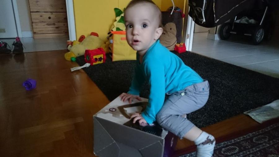 Egy másik, még nagyobb öröm, hogy láthatóan pár lépésnyire vagyunk attól, hogy Mimm kapaszkodás nélkül fel tudjon állni. Van egy doboza, amire mostanában egyre ügyesebben mászik föl. Az egyik ilyen csúcstámadás után egészen hosszú időre állva maradt, mindenféle kétségbeesés nélkül. Azóta többször megismételte a mutatványt.Ahogy ismerem, simán lehet, hogy a következő hetekben addig nem nyugszik, míg stabilan meg nem áll. Már csak egy hónap van hátra az első szülinapjáig, még az is lehet, hogy addigra a kizárólag kapaszkodva járás már csak emlék lesz. Vagy nem. Meglátjuk.